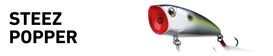多くのトップウォータープラグには、比重が軽く水に浮くナイロンラインやPEラインを使うことが推奨されており、きちんとアクションをつけるにはそれがほぼ必須の条件になっている。しかしながら持ち歩けるタックル数に限りがあるオカッパリや、極力ロッドの本数を減らしたいスモールボートでの釣行時には、トップウォーター用というだけでもうワンタックルを追加で準備することが困難な場合もある。スティーズポッパーはその浮力やバランス、アクションを調整し、現在のバスフィッシングにおいて主流といえる「フロロカーボンライン」での使用を前提として開発された、数少ないバーサタイル系タックル対応型のポッパーといえる。