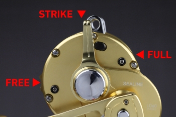 レバードラグが“STRIKE”の位置では防水機構がONとなり、滑らかなドラグ性能が長期間維持される。