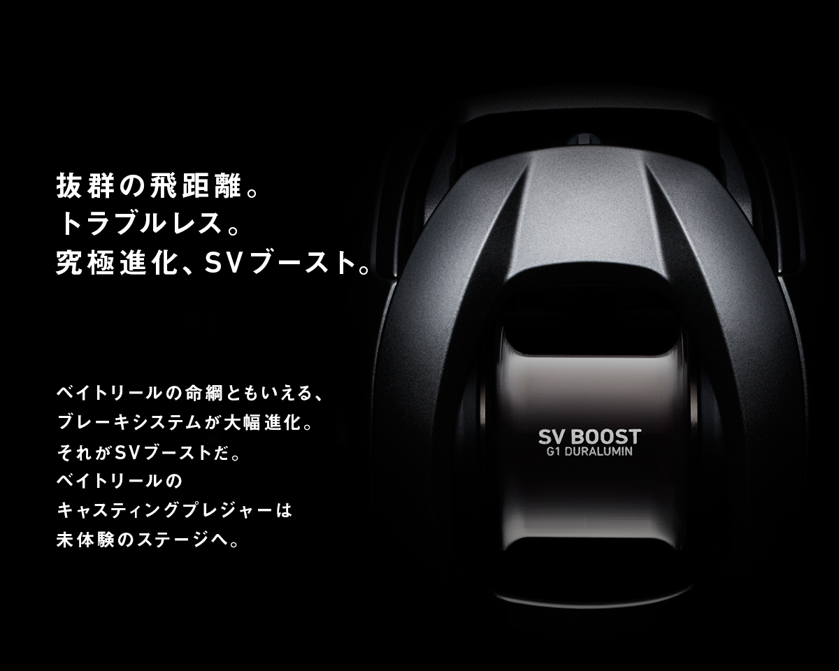 さて、そのマグフォース。2020年、さらなる進化をお届けできることとなった。その名もSVブースト。インダクトローターが2段階可動になることで、より幅広いルアーウエイトを扱えるとともに、ロングキャストから近距離のピッチングまで、より多様なキャスティングレンジに対応可能となったのである。ダイワベイトリールの革命は止まらない。