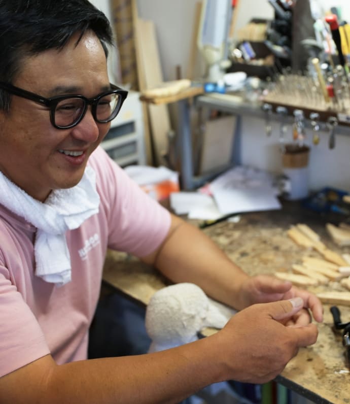 デザイナーにしてクリエイターのワカモントさん。ハンドメイドとマスプロダクトの差こそあれ、DAIWAと想いを重ねている。