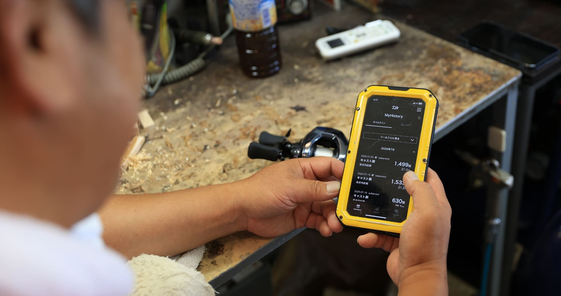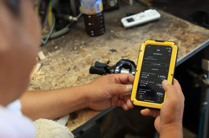 「スマホを見ればリアルタイムで、一投ごとに飛距離が伸びていくのがわかる。すると、もっともっと!と自身の励みになる。今までのようにリールが限界を決めるのでもなく、自らのキャスト方法をリールに馴染ませていくのでもない。投げれば投げるほどに伸びていくのが『100』。常に伸びしろがある。そこが素晴らしいですね」。
