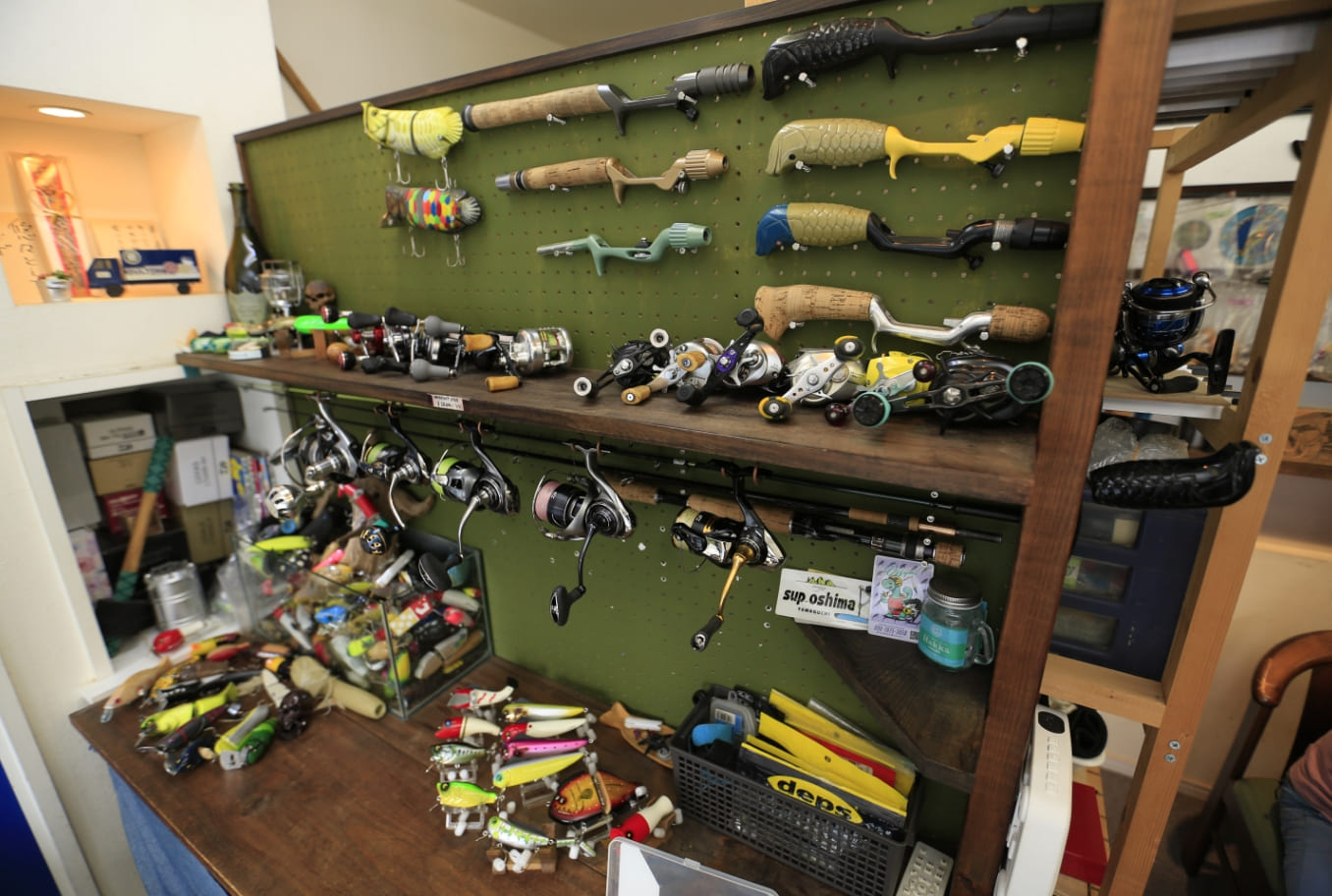現に、インタビューで訪れたワカモントさんのショップ兼工房には、新旧問わず様々なタックルが並んでいた。自らが手がけたルアーやロッドに留まらず、「気になるものはすべて」という市販品の数々がそこにあった。