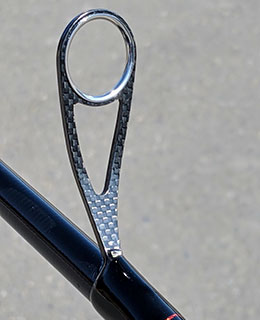 AGS(エアガイドシステム)。フレームにカーボンを用いたダイワ独自のガイドシステム。従来のチタンガイドと比べ、約40%も軽量化に成功
