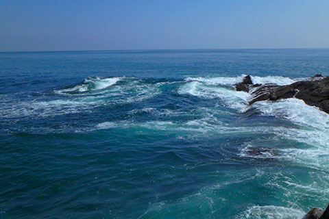 まずは水温。目安となるのは20度。とはいってもアイナメにとってはかなりの高水温のため、岬の先端など少しでも潮通しの良いエリアを好みます。地形の変化、つまり「水の動く場所」を探してみましょう。そこには「ベイト」も大きく関わっています。
