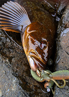 この時期の海には多くのベイトが残っています。これらベイトは先程述べた「地形の変化」に集まるため、アイナメにとって産卵前の栄養補給場所なっており、ベイトを意識している初夏の釣りと同じ。そのため、使うルアーも必然的にベイトライクなチョイスとなってきます。基本はテキサスリグやフリリグなどオフセットフックのリグで探りますが、イワシなどの小魚を意識しているようならジグヘッドでのスイミングも有効となります。基本的にルアーのカラーはベイトに合わせるといいでしょう。
