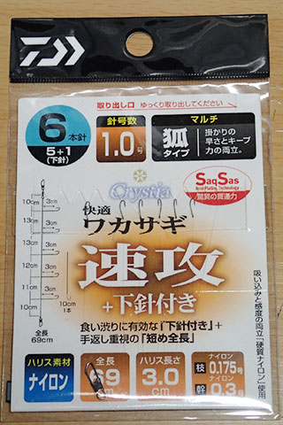 オモリは、後述する穂先とのバランス的には、5~6gが沈むスピードが早く手返しもよく、仕掛けが張った状態になりやすい分、アワセも軽い力で決まりやすい。
