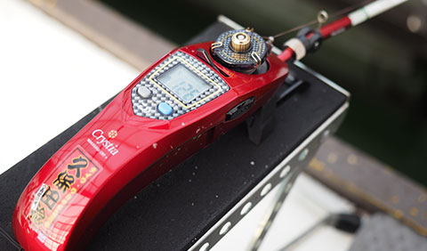 また、小型ワカサギのアタリや乗りを感じる意味では、電動リールの性能も大きく関わる。「クリスティアワカサギCRT+」と外部電源「クリスティアワカサギαユニット」の「クリスティアワカサギCRTα」は、軽さはもちろん、くびれ形状で指で軽くつまむように持てること、さらに響きやすいソリッド材質によって手感度でのアタリ、ワカサギの重みを感じやすい。