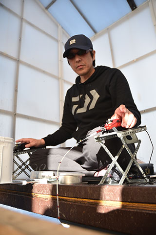 ショートなエダスで繊細なアタリを取る。 - 穂先:ダイワ「クリスティアワカサギ胴調子SS30.5SSS」