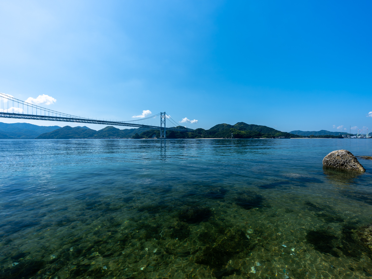 目の前に広がる瀬戸内海は、穏やかな波が陽の光を反射し、遠くには橋が見える。のんびり釣りを楽しむには理想的な場所だ。