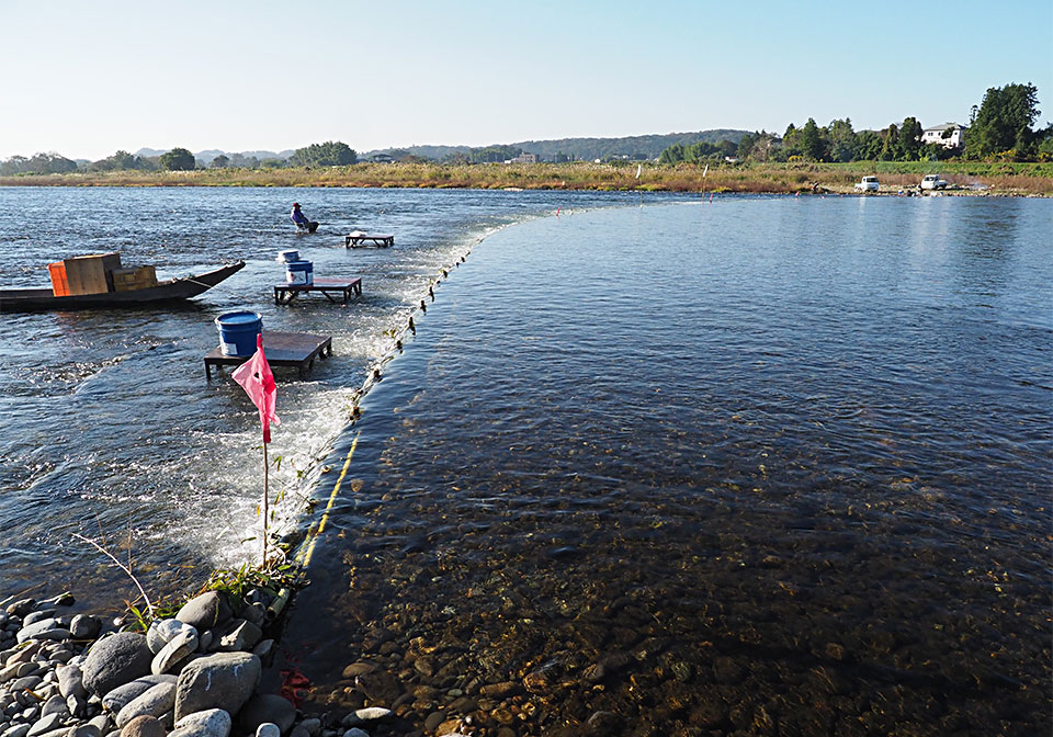 栃木県北部にある那須岳を源流とし、同県と茨城県を流れ太平洋に注ぐ関東平野屈指の清流。栃木県と茨城県の県境を中心とした中流部はアユの本場として知られ、夏から秋には天然アユを狙う友釣りで賑わうほか、多数の観光やなも設置されている。カヌーやカヤックで長い流程を楽しむロングトレイルも人気。魚道も介して海からの連絡が通じているため、春にはサクラマスやアユ、マルタウグイ、モクズガニなどが、秋にはシロザケが遡上する。なかでも海から遡上して森で産卵するサクラマスは、関東地方ではとても貴重な存在。今回、取材をさせてもらったのは栃木県と茨城県の県境で職漁活動とハンドクラフトワークを営む「Riverline(https://riverline-system.com/)」の綱川孝俊さん。