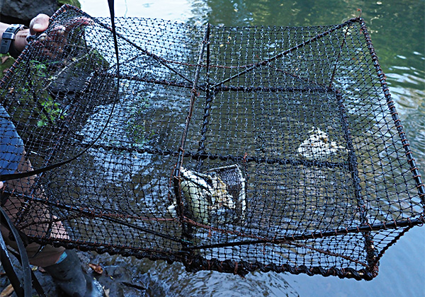 漁獲したモクズガニやウナギは出荷前に家裏から出る湧水でドロを吐かせる。見せてもらったモクズガニの大きさは予想をはるかに上回り、まるで毛ガニのような迫力だ。数年を川の中で過ごし成長を遂げて成熟したカニたちはちょうど今頃から、河口や海岸での産卵に向けて那珂川を下り始める。知り合いの水中カメラマンに聞いた話では、カニは流れに乗りながらピョーンピョーンと飛ぶように驚くほど素早く川を下って行くという。対して春に小型のモクズガニが遡上する様子は綱川さんが動画に収めて「Riverline」でアップしている。一列に隊列を組んで急流の中を一歩一歩確かな足取りで上っていく様に生き物の力強い生命力を感じる。ウナギもアユもサケも、そしてカニも力強く生きているのだ。