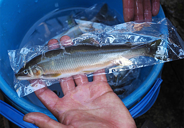 「アユは多いです。サケは最近は減ってしまいましたけど、何年か前までは木々が紅葉に染まる中を上ってきましたよ。海から来るもので言えばモクズガニやウグイ、それにマルタウグイもやってきます」