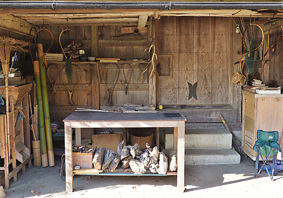 食事を済ませると、工房を覗かせてもらった。敷地内にある古い家屋の縁側を利用した工房は、綱川さんが昨日話していた通り代々繋いできた証とも言えるものだった。古いのにまとまりよく新鮮な風情がある。普段から立って仕事をするという綱川さんに、ハンドクラフトへのこだわりを聞きながら少しだけ作業を進めてもらった。
