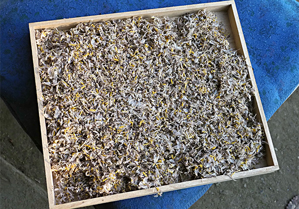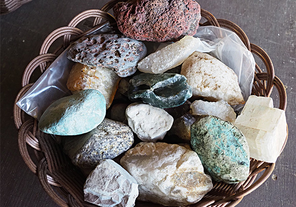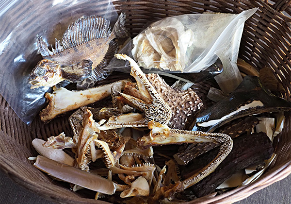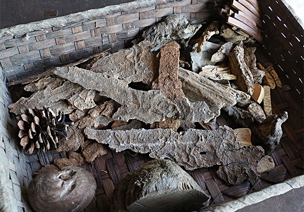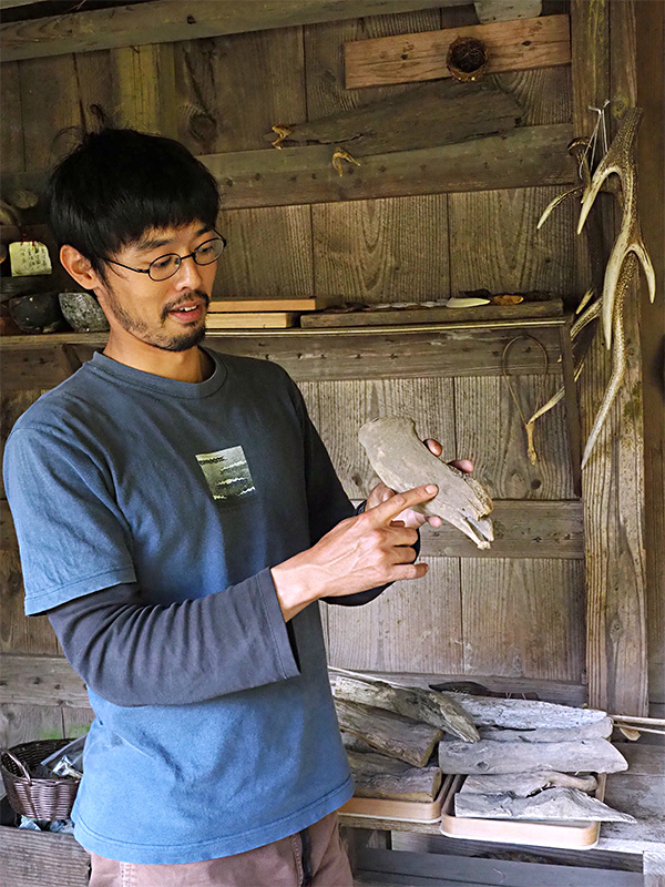 その後も次から次へと工房から出てくる石、骨、泥蜂の巣、貝殻、樹皮、そしてカゲロウの死骸……。見る人が見たら「がらくた」のような「宝物」を見て、それまでホームページを拝見していてぼんやりと思っていたことが、実感に変わる。
