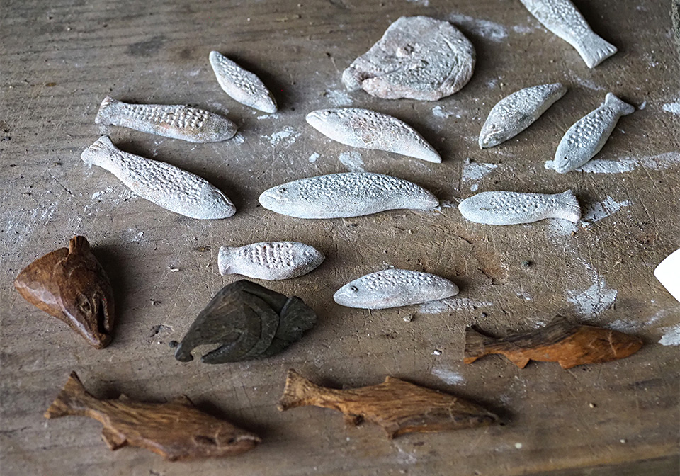 那珂川と向き合い、親しみ、釣りを楽しみ、漁を積み重ね、魚やカニや材など流域の様々な所から採ってきた好きなものを集めて創って形にする。あれこれと模索しながら、心を遊ばせながら。