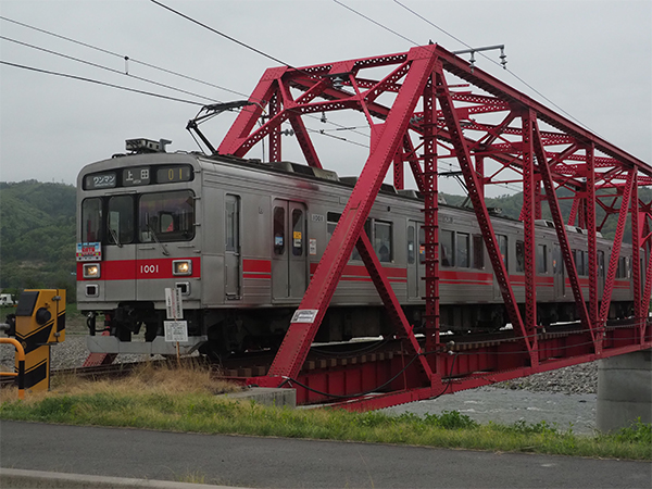 2022年4月末。長野県内を滔々と流れる雄大な清流、千曲川を訪れた。「千の曲がりを持つ川」という名の由来の通り、元来の千曲川は幾多もの蛇行部を持ち、洪水のたびに流路を変えるような広い川原を持つ川だった。目の前の赤い鉄橋は、令和元年の台風19号で崩落し、全国的なニュースにもなった千曲川橋梁。上田駅と別所温泉駅を結ぶ上田電鉄が1年5カ月ぶりに復旧を果たしたのは昨春のことだ。鈍く光るステンレスボディに赤いラインの走る車両、そして真っ赤な鉄橋は、「赤備え」で知られる上田城城主の名将・真田幸村のイメージとオーバーラップする。