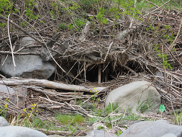 秋のアユ同様、春から初夏に浅瀬に集まるウグイは多くの動物たちにとって重要なタンパク源となっていることだろう。カワウやアオサギ、イタチにキツネなど、多くの動物たちが利用しているに違いない。千曲川への最初の一歩で偶然にもキツネのフンとウグイの死骸を見ることができた。そんなことで一気に川に親近感を覚えるから不思議だ。