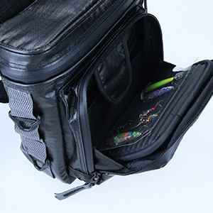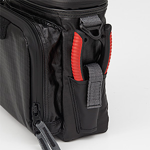 ライトゲームを楽しむためのコンパクトタイプのバッグ。防水生地に樹脂コーティングを施していますが、防水バッグではありません。よく使用するルアーを収納し取り出しがラクラクな「ルアーマット付きフロントポケット」を備え、ポケットの開閉を容易にするフラップ付き。ウエストベルトにはねじれにくい「ハードベルト」を採用し、バッグ本体部の移動がしやすく扱いやすい「低重心縦型形状」となっています。雨や水しぶきに強い止水ファスナーを使用し、メインルームには中型ボックス(約21x15cm)を1個収納可能。プライヤーホルダー、Dリング、ベルトループも付き。