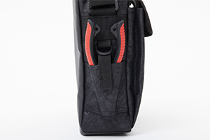 メインルームには中型ボックス(約21×15cm程度)を2個収納可能。さらに、小物類を別けて収納できるフロントポケットや内ポケット付き。プライヤーホルダーやDリング、ベルトループも装備。バッグ全体には水に強いPVC表面生地が使用されている(フレンチネイビーP、ブラックPのみ)。