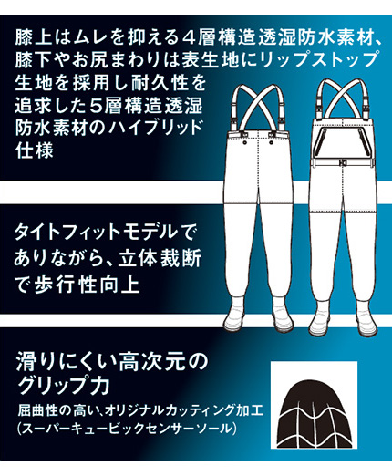 ■【膝上】ウェーダー専用4層構造防水透湿素材『ブレスアーマー』
