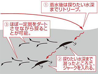 異なるレンジを攻略できる水深可変ジャークベイト。