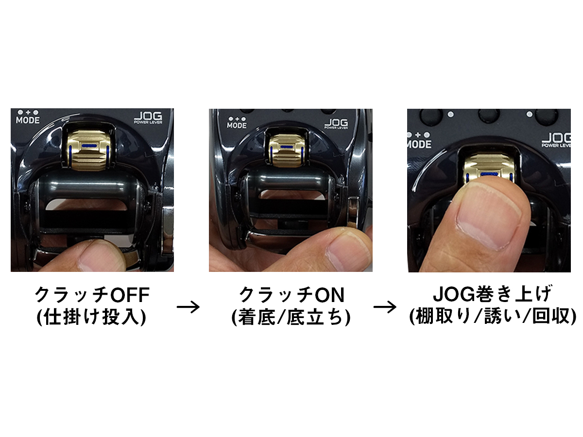 ロッドを握った手の親指1本で巻上やクラッチのON/OFF操作が自由自在に。