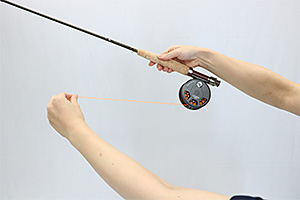 (3)棒とフライラインをまとめて3~5回程度巻く。