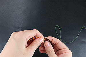 (4)巻いた先端をフライラインと棒の間を反対側まで通す。