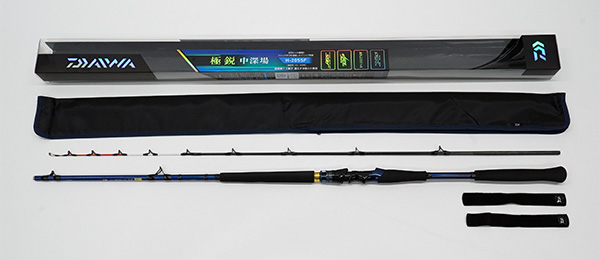今や人気沸騰の中深海釣り。タックルが進化し手軽に楽しめる釣りになり中深海アングラーは年々増加している。中深海ロッドに求める物は何か?海底深くの地形や微かな当たりや変化を感じ仕掛けを動かす操作性・粘りの有るバットパワーも必要で有る。これらの中深海ロッドに欠かせない利点を新バランス理論を用いて開発。中深海釣りでターゲットとなる魚は勿論、水深・オモリ・誘いなどフィールドテストを繰り返し仕上がったロッドが新たに生まれ変わった「極鋭 中深場」である。
