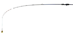 極めてしなやかな穂先から、急速にパワーのあるチューブラー部へと繋がる変則7:3調子。低活性時に必要となる目感度と食い込み性能を備えながら、精度の高いコマセワークと瞬時のアワセを可能にする(画像は40号負荷時).