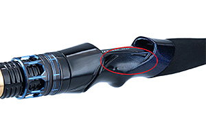 後方トリガーも、形状や位置の調整を繰り返しテストを行った。最終的にリールシート後端を斜めにカットすることで、従来のデュラグリップにパーミングの安定性を任せた方が、感度、操作性、様々な持ち方への対応力、疲労の少なさでベストと結論付けた。