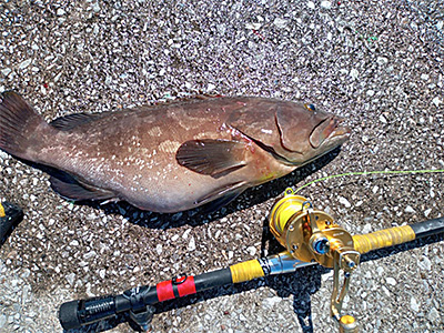 仕掛けを投入したら、置き竿にしてアタリを待ちます。エサを食った魚が走り、竿が舞い込んだところでやり取りを開始しますが、いくら中小型のクエといえども、食った直後の走りは強烈です。まずは無理をせず、クエの走りを止め、根から離すイメージで置き竿にしたままリールを巻くとよいでしょう。ドラグを滑らせながらリールを巻いていると、やがてクエの走りが止まります。ここからはスタンディングでやり取りしても大丈夫です。注意点としては、やはり相手はパワーのあるクエなので、不測の事態に備えて尻手ロープは必ずセットしてください。「ライトタックルだと自然にソフトなやり取りになるためか、魚が怒らずすんなり寄ってくるように思いますね」と柳さんは言います。柔よく剛を制す新たなクエ釣り。その歴史は、まだ始まったばかりです。