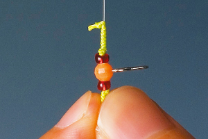 3.編み込み部をつまんで好みの位置にビーズを動かし、編み込みを伸ばして位置を固定する
