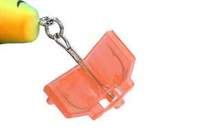 ワンタッチで安全に着脱可能なプルリング付き、また透明カラーなのでハリ先が確認できる。
