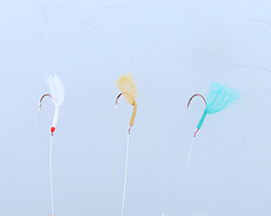 擬餌が踊る枝長(ハリス)の設計。針サイズに合わせた独自の枝長(ハリス)をセレクト。針サイズに合わせた擬餌の長さ・太さ(幅)設計。