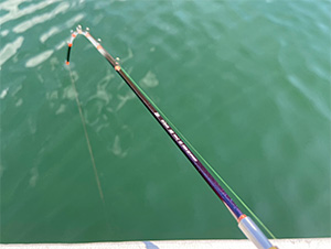 ダイワの穂先ラインアップの中では最も長く、誘い幅が大きくとれたり、120cm超えの長い仕掛けの取り回しがスムーズ。