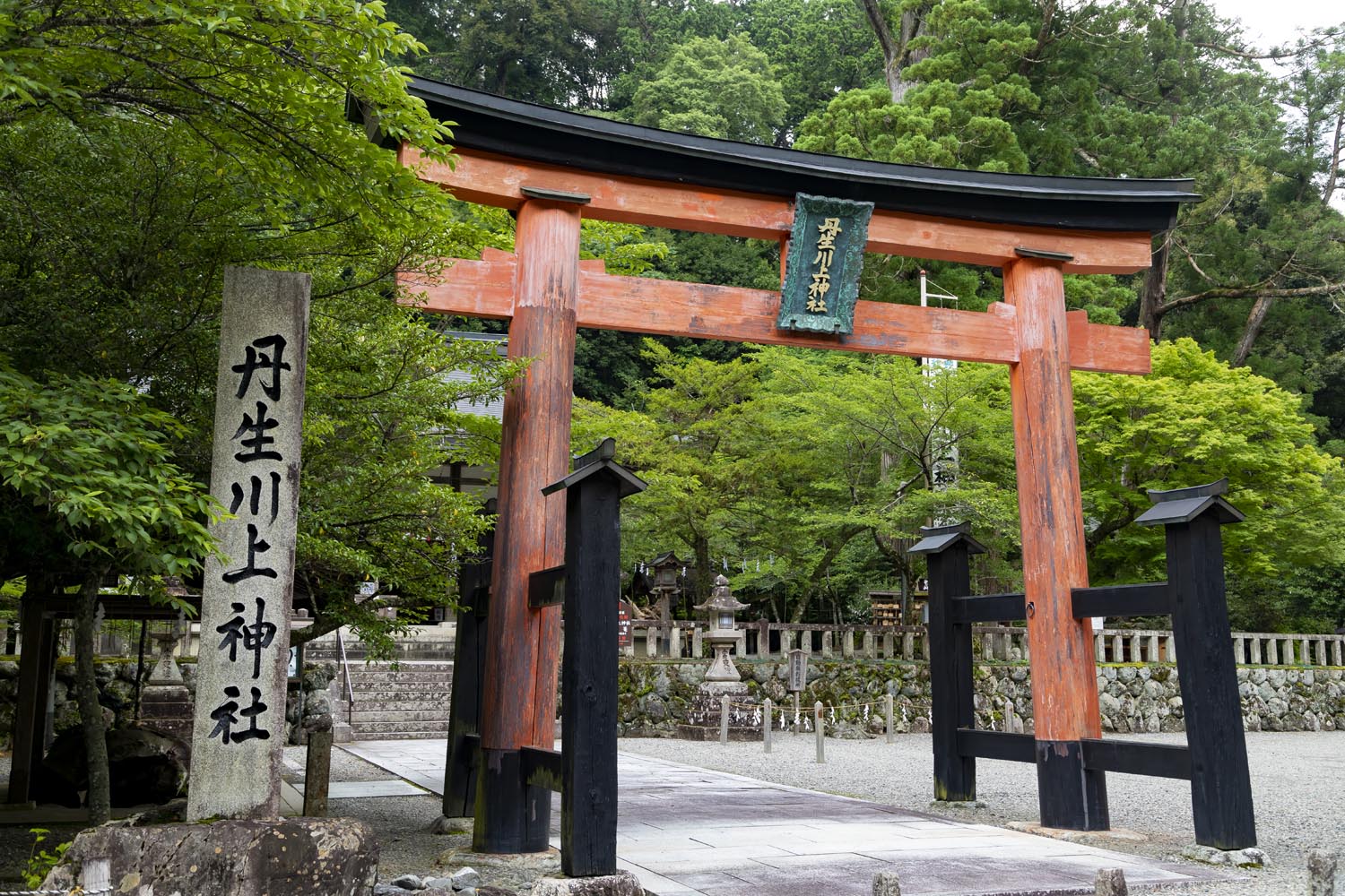 車の窓の外に目をやると、とりわけ背の高い木々が何かを守るかのように並んでいる。木々の間から見える、「水神宗社 丹生川上神社」の幟。木々の間からチラリと見える社殿の迫力が、一目でここが由緒ある特別な神社であることを物語っている。