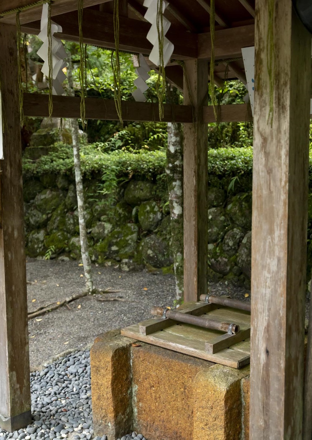 境内にある、丹生の真名井。水の神様、罔象女神のお清めの水だ。