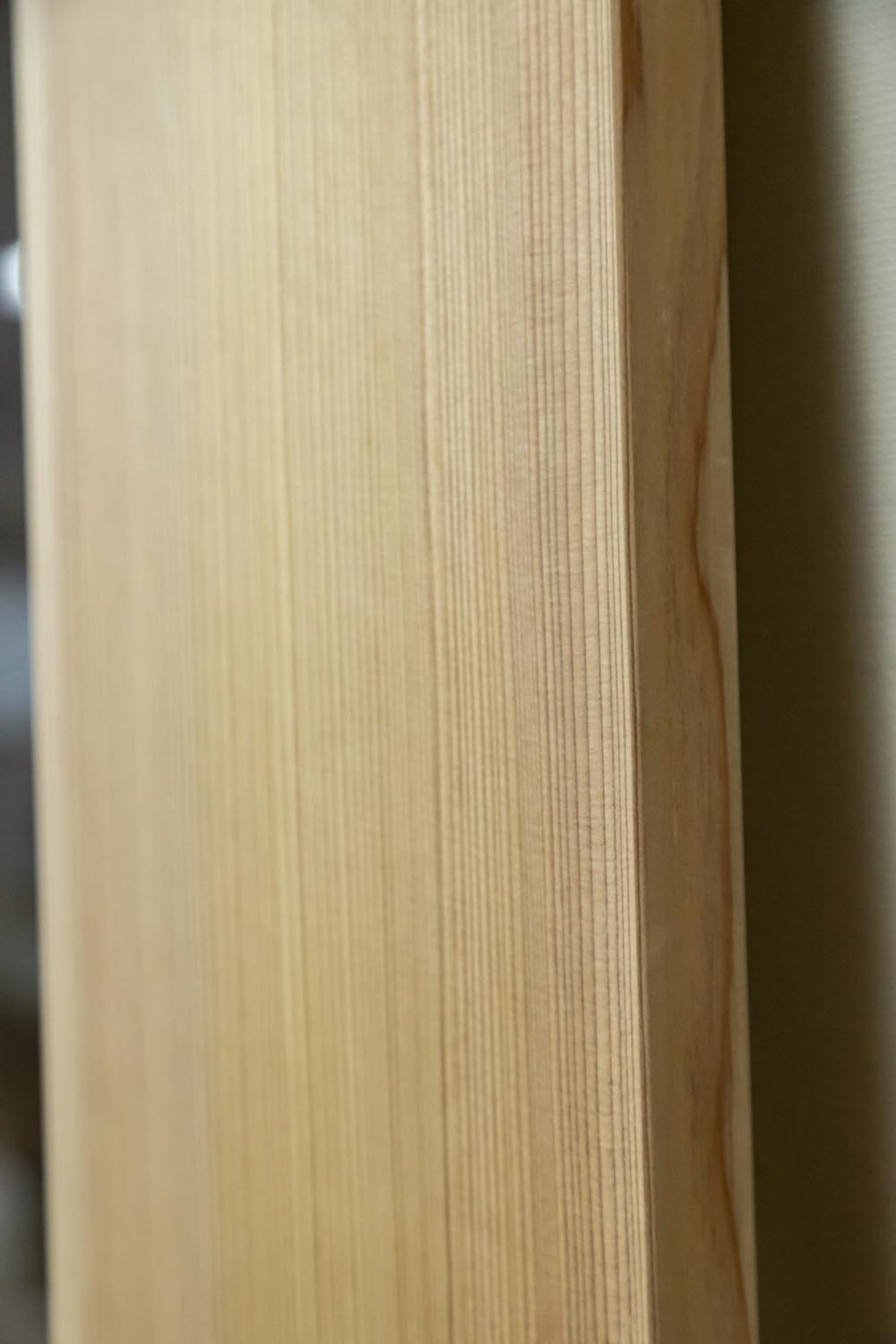 「吉野林業の特徴は『密植・多間伐・長伐期』。ほかの産地の3倍もの密度で苗を植えて競争させ、何度も間伐しながら長い時間をかけて質の良いスギやヒノキを育てるのです。そして、自分の子供を撫でるように大事に育てる『撫育』も吉野林業ならでは。こうして育てられた吉野材は、年輪の幅が細かく均一で、節がありません。また、木の根元と上部の太さがあまり変わらない円柱形であること、色艶や香りがいいことも特色です」(森口さん)