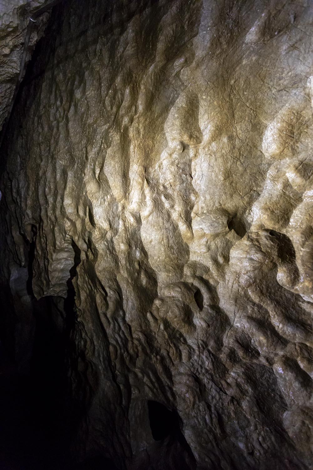 鍾乳洞の岩肌は細かく波打っていて、まるで龍の鱗を押し付けたかのようだ。石灰岩の中を龍が通ったところが道になったのではないかと想像が膨らむ。