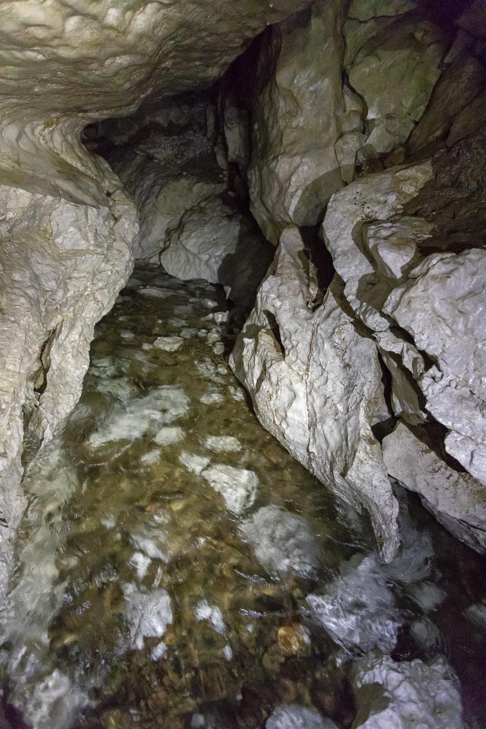 水音が聞こえる方に進んでいくと、小さな川が流れていた。これは、すぐそばを流れる四万十川の水だという。真っ暗な鍾乳洞の中に川が流れているのはなんとも不思議な光景だ。