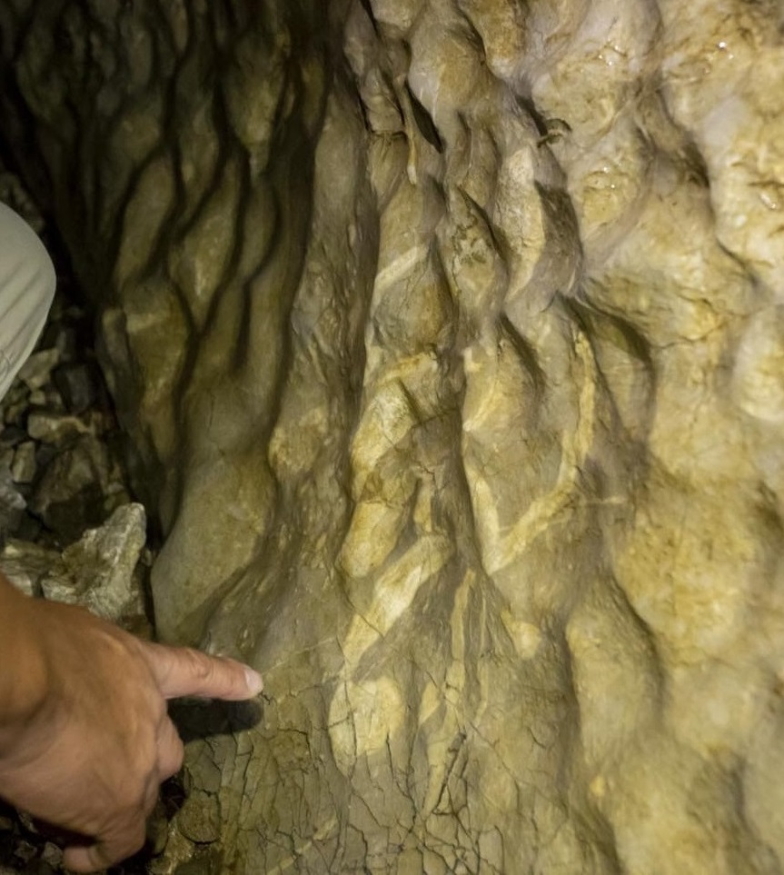源流の鍾乳洞に残る2億2千万年前の石灰岩
