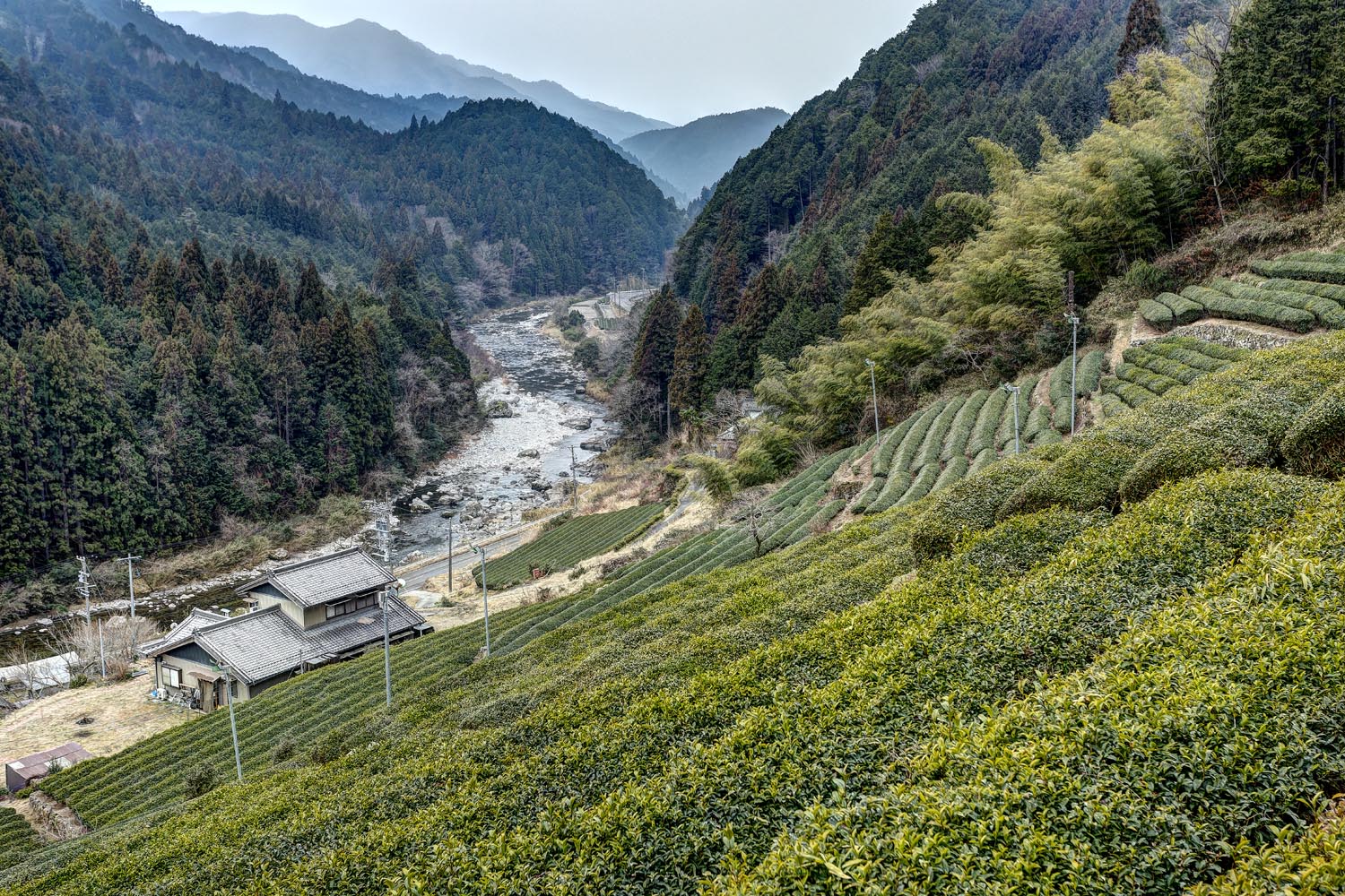 斜面に作られた茶畑から川を見下ろし、栗本さんが言った。