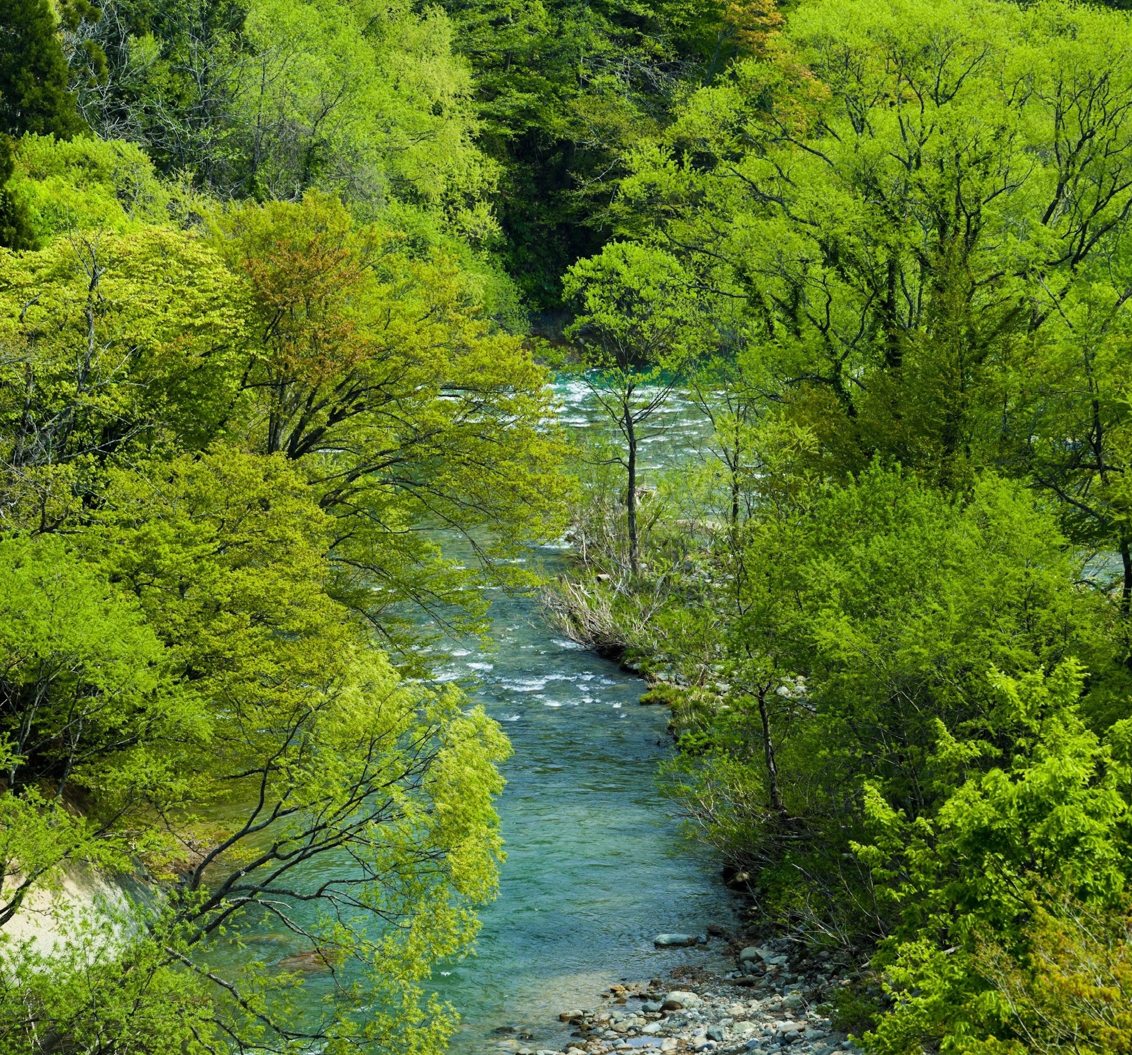 春の暗門川。上流には暗門の滝があり、トレッキングコースもある