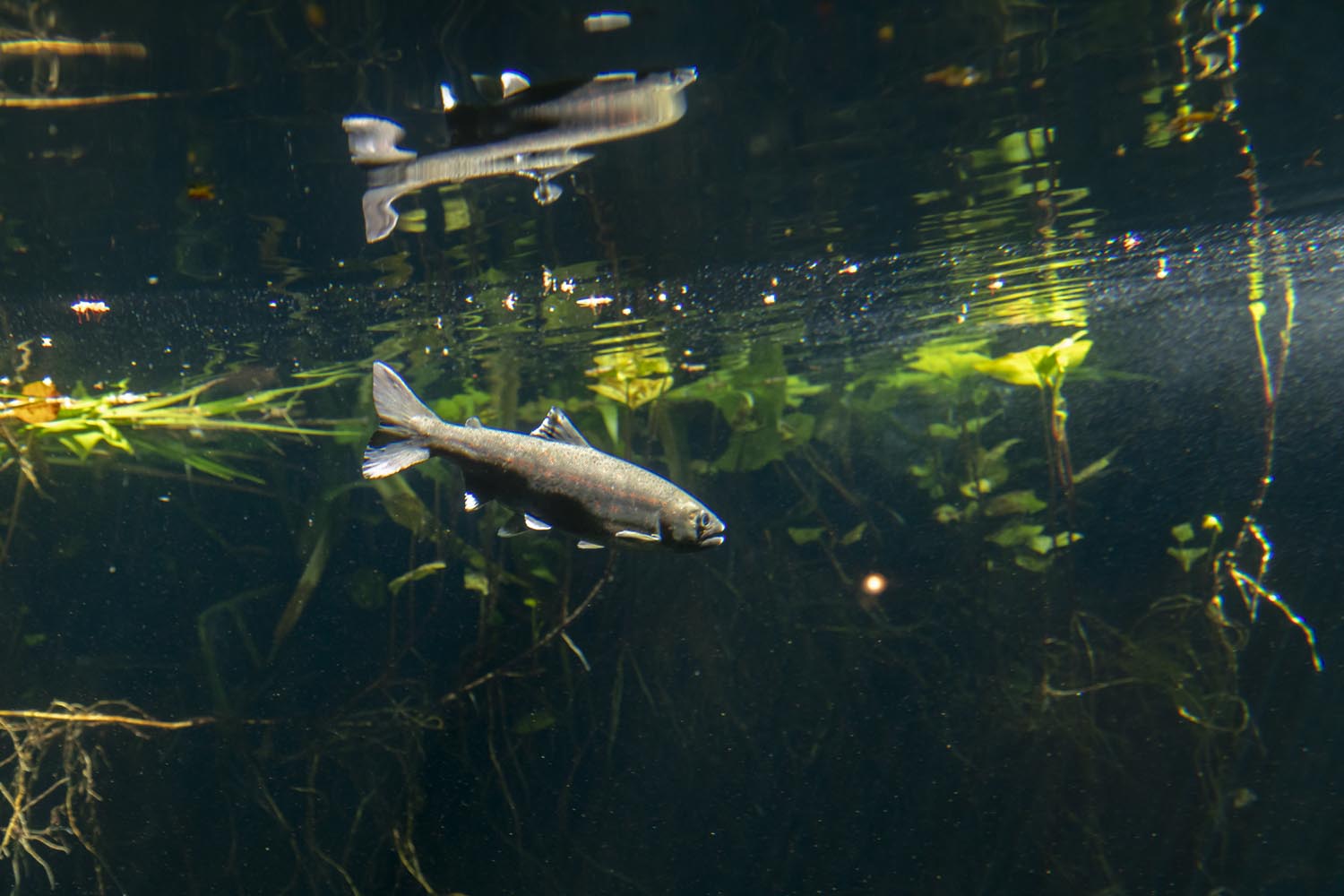 川の断面を再現したレイアウトになっている水槽に、太陽光がまっすぐに注ぐ。カーテンのように揺れる光の間を泳ぐ渓流魚はとても気持ち良さそうだ。松野町の代名詞であるニホンウナギやツガニ、カワヨシノボリやドンコ、海から遡上してくるというボラ、河口にいるアカメの水槽もある。ウナギに直接触れることができるタッチプールは、子供に大人気だとか。