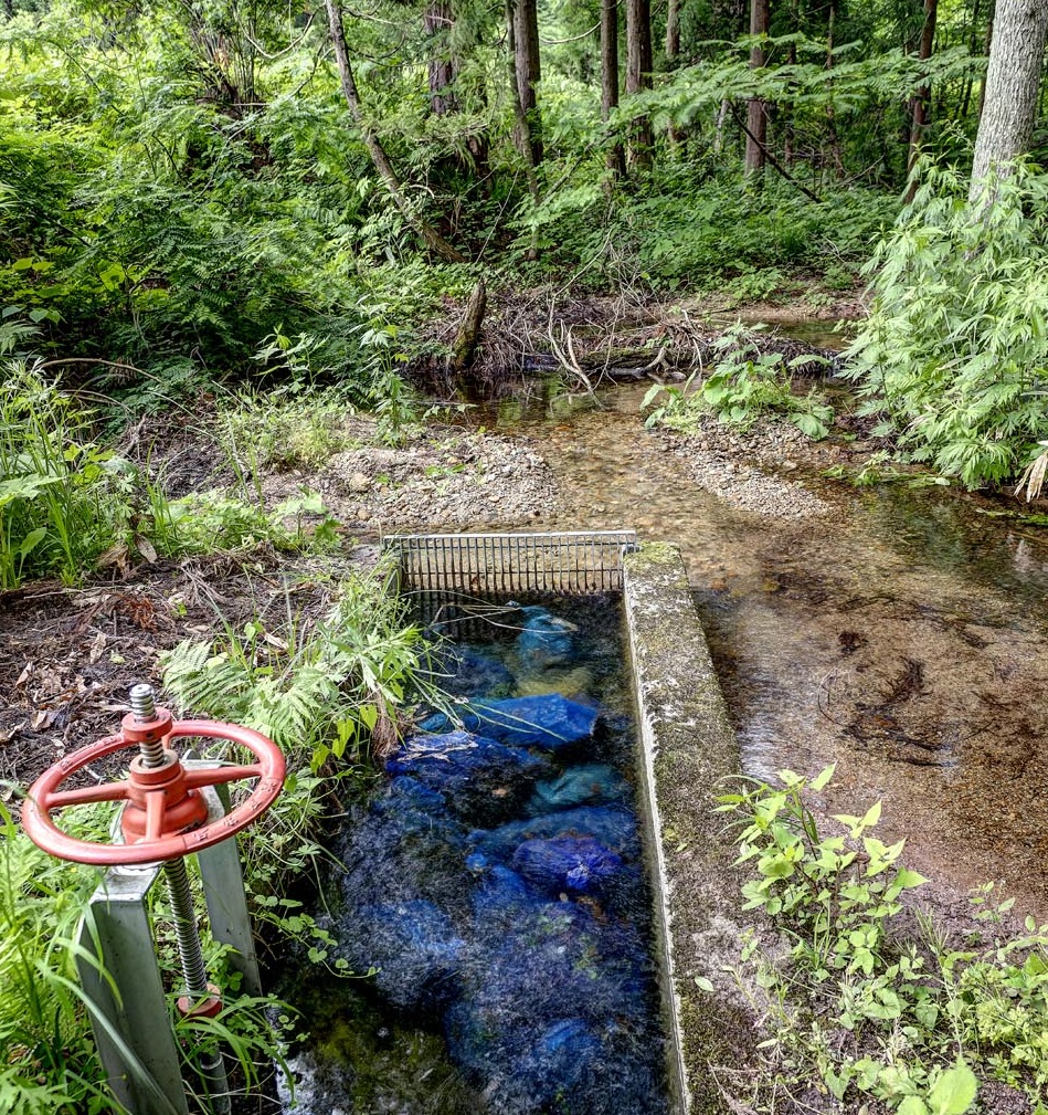 用水路にイワナが泳いでいることもしばしば。