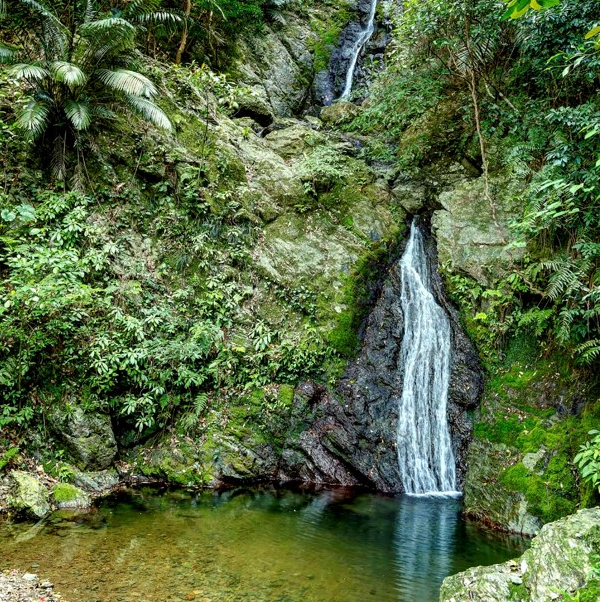 大宜味村喜如嘉の七滝。聖地として拝所(うがんじょ)が設けられており、集落の人々によって大切に守られている。