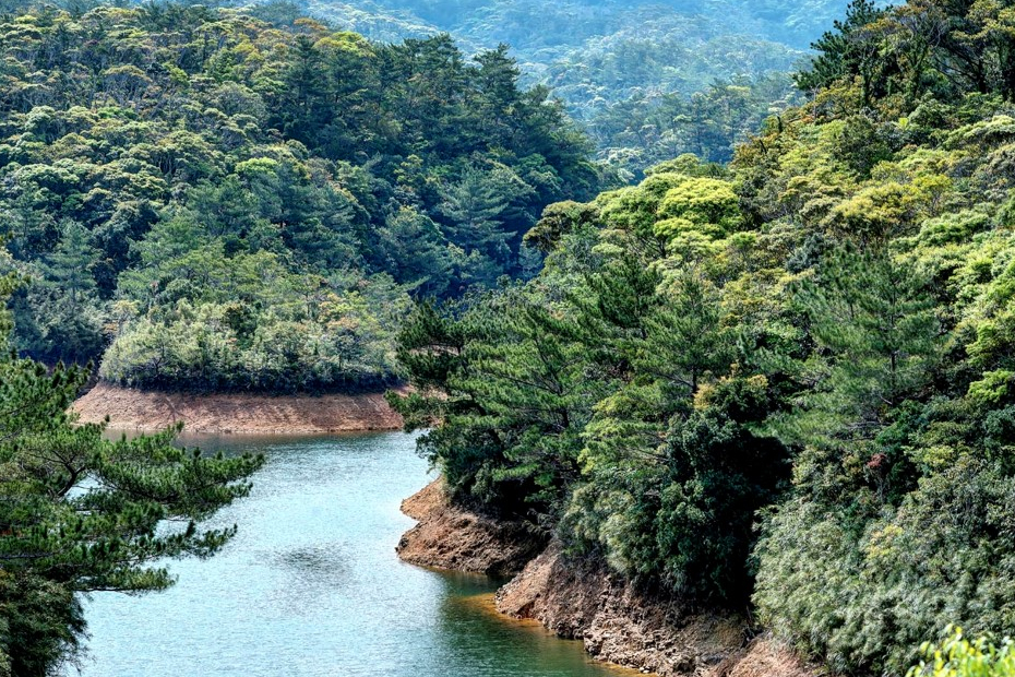 源流域である沖縄本島北部にはダム湖が点在する。この水が中南部の人々の生活用水となる。