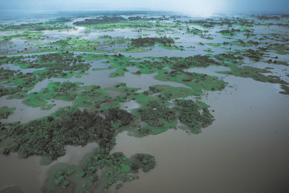 「オリノコ川にはカシキアレ川という派流(※)がありましてね。そのカシキアレ川が、アマゾン川支流のネグロ川に注ぎ込んでいます。つまり、カシキアレ川は、オリノコ川とネグロ川をつなぐ天然の運河のような役割をしているのです。そのため、オリノコ川の水の3分の1はネグロ川に注がれているんですよ。しかもこのあたりは標高が低いため、雨季になると水浸しになって、湖のような光景が広がります」