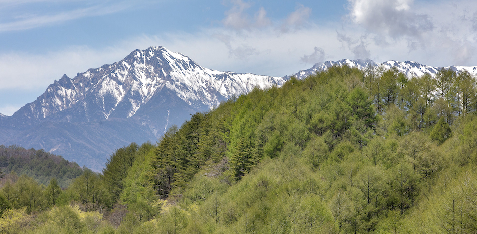カラマツが豊富な川上村の山々。